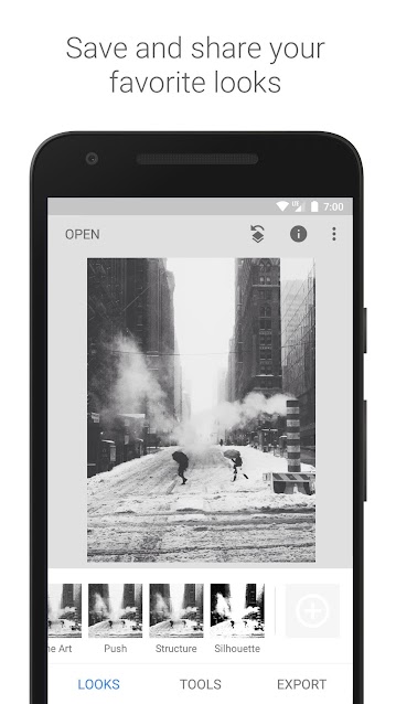 و هو ايضا من أشهر التطبيقات من تطوير شركة جوجل للتعديل على الصور باحترافية حيث يساعد على تحسين الصور من حيث التأثيرات و الفلاتر . وقد تم تصنيفه من ضمن افضل التطبيقات سنة 2015 . كما حصل التطبيق على أزيد من 800 الف مستخدم من أجهزة الأندرويد